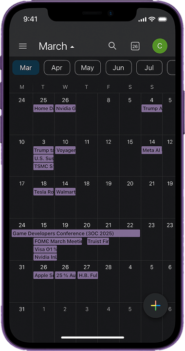 Calvestor automatically syncs key investment information, such as news, earnings schedules, and reports, directly to your calendar app.